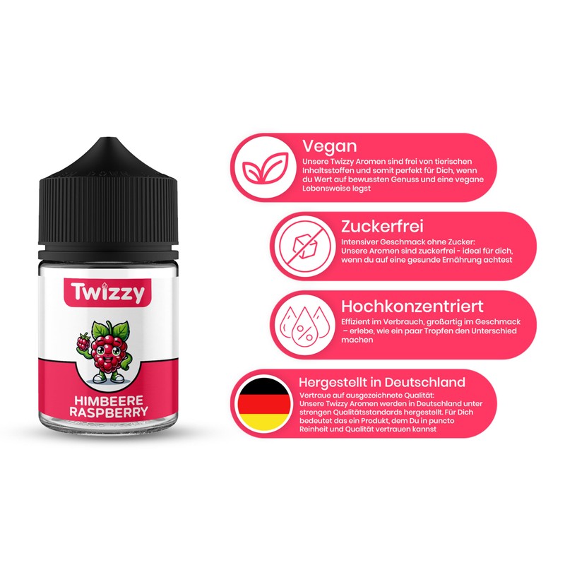 Twizzy Raspberry Food Flavouring, 60 ml, Intense Aroma – Ideal for Baking, Food & Drinks, Also for Nebulisers, Mist Machines, etc.
