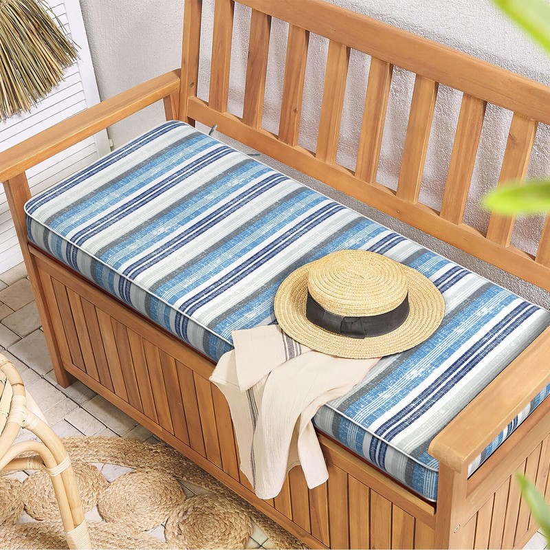 TWLEAR Outdoor Bench Cushion, Patio Furniture Cushion 48 x 18 x 3 Inch, Water Resistant Garden Sofa Swing Pad Settee Loveseat Couch Replacement Cushion, 1 Pack, Stripe Layered Blue