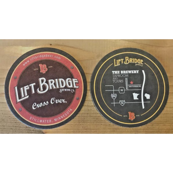 TWO (2) LIFT BRIDGE BREWING CO. BEER COASTERS "CROSS OVER" STILLWATER, MN MAP