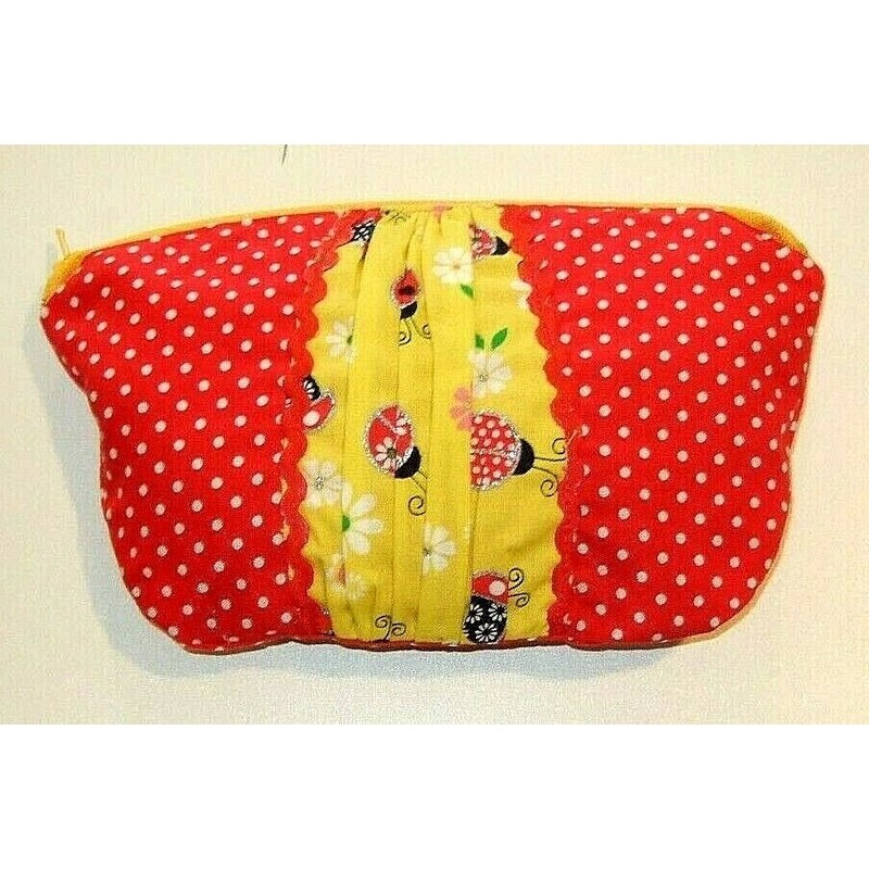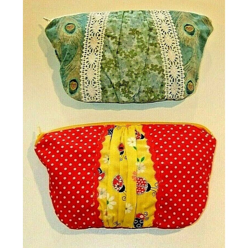 Up for sale is this Lot of Two Cotton Zippered Cosmetic Cases One Red Ladybug One Blue Peacock - NEW. These are made of a strong and durable cotton fabric, has a zippered closure, lined with a silky type of fabric, and measures approx. 6.5" L (along the bottom) and 9" L (along the top) x 5.5" H x 1.5" D. One is a red polka dot with ladybug print and rick rack trim. The other is of a blue peacock print with lace trim. I have many other cosmetic bags, coin purses, and pencil cases listed as well, so if you are interested, please take a look.