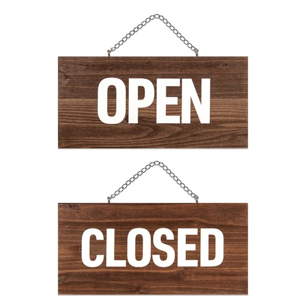 Two-face Open Close Sign, Wooden Domestic Cedar (Dark Brown)