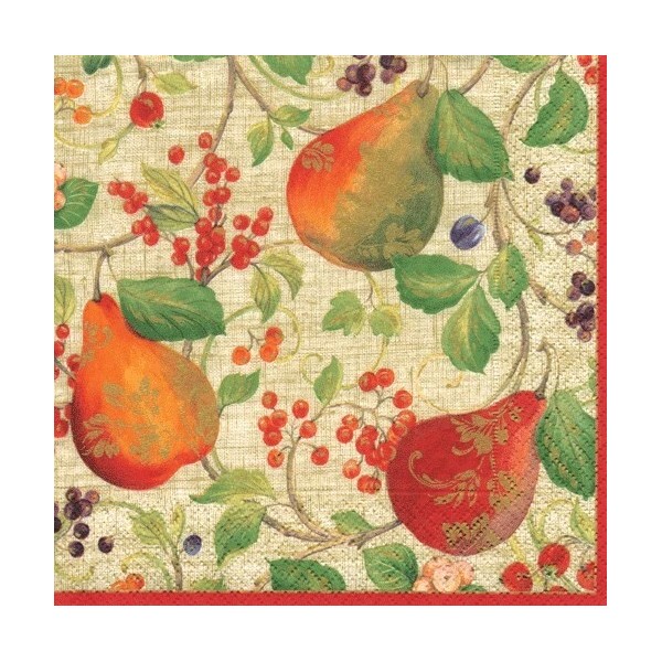 TWO (2) Caspari "Decorated Pear Natural" Cocktail Napkins Decoupage (42a)