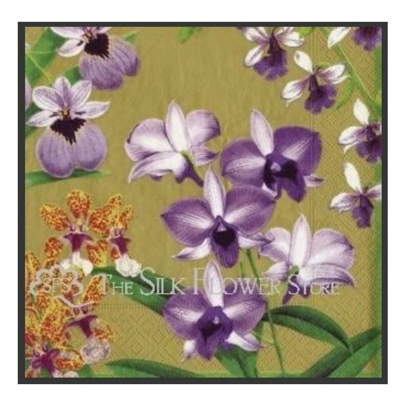 TWO Individual Napkins Orchids Gold Dinner for Decoupage (124