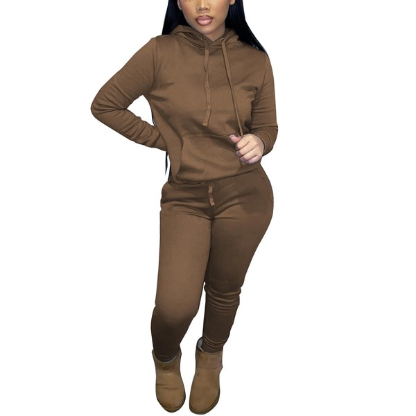 Two Piece Outfits For Women Casual Long Sleeve Hoodie Sweatshirts Jogger Sweatpants Tracksuit Sweatsuit Lounge Sets-Coffee-M