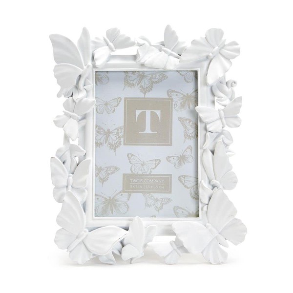 Two's Company White Butterfly 5X7 Photo Frame