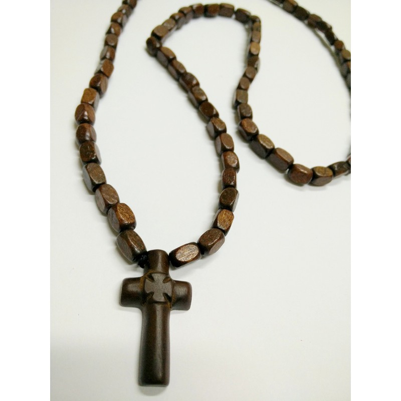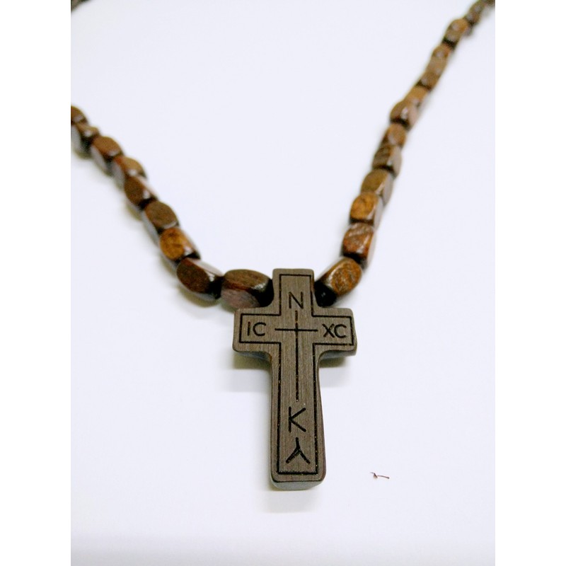 Two-Sided Christian Orthodox Greek Religious Rozary Necklace with Wood Cross - Crucifix / 11