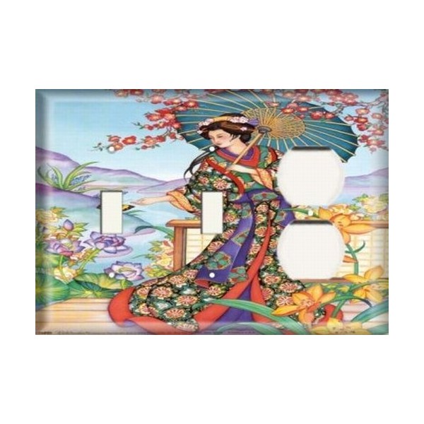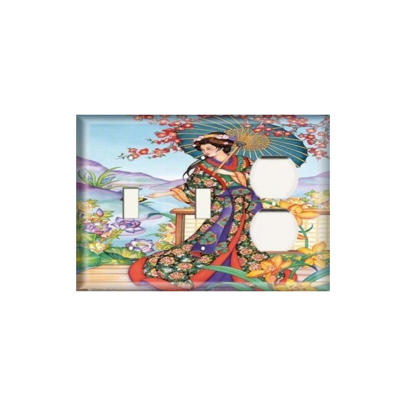 Two Switch/One Duplex Receptacle Plate - Oriental Woman