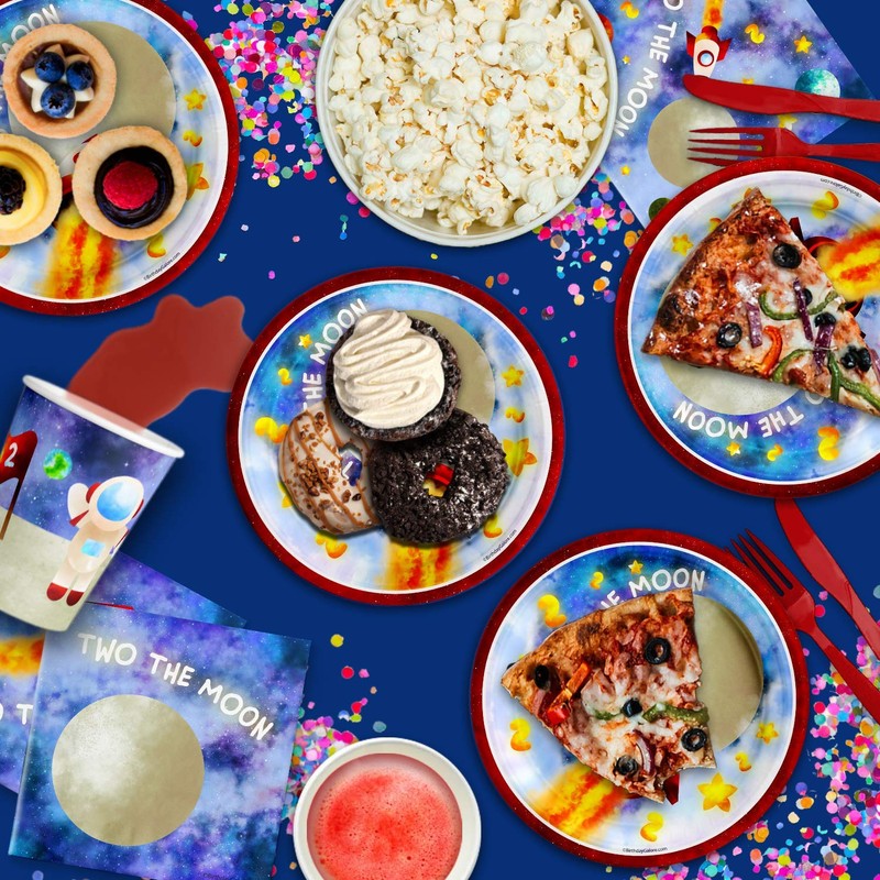 Two the Moon - Juego de suministros para fiesta de cumpleaños para 16 unidades