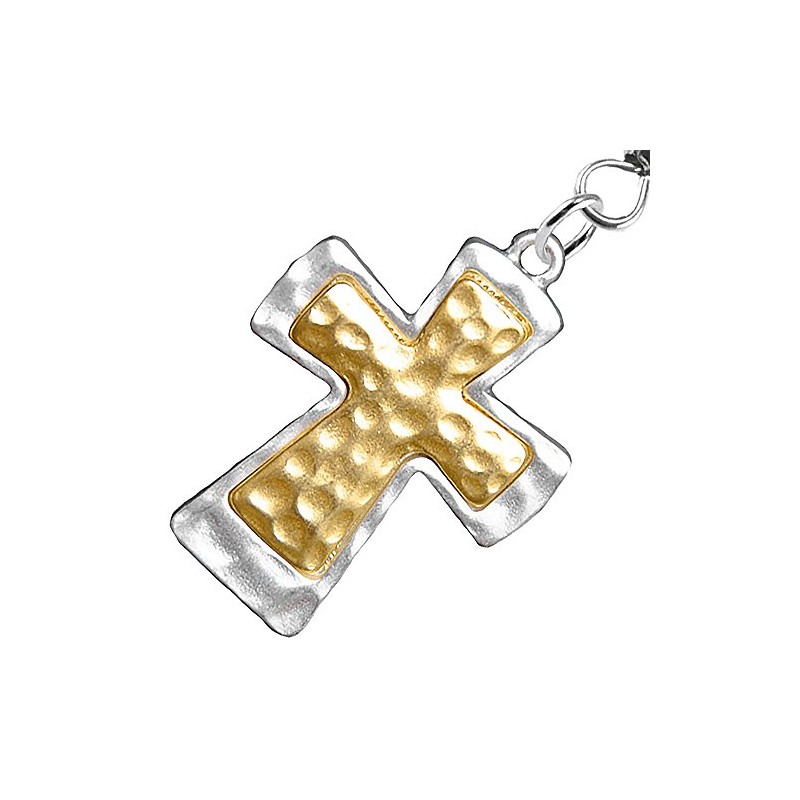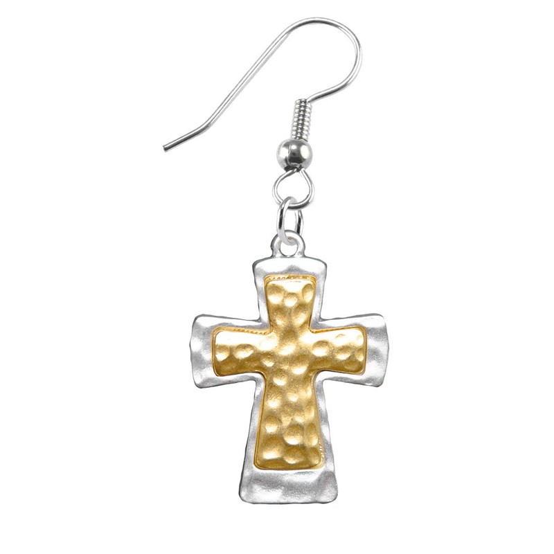 • Two Tone Matt Gold and Silver Christian Cross Fishhook Earrings Hypoallergenic, Safe-Nickel, Lead, And Cadmium Free