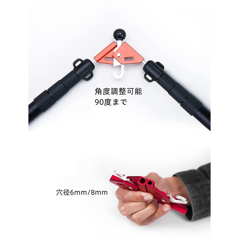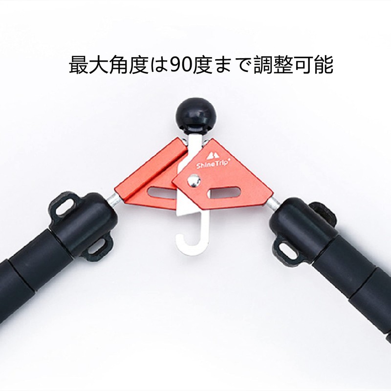 - (Effectively utilize the space inside the tent) Effectively use the space inside the tent. You can double the tent with a variety of single-pole tents by adjusting the angle of the diopter parts (up to 90°) or the length of the pole