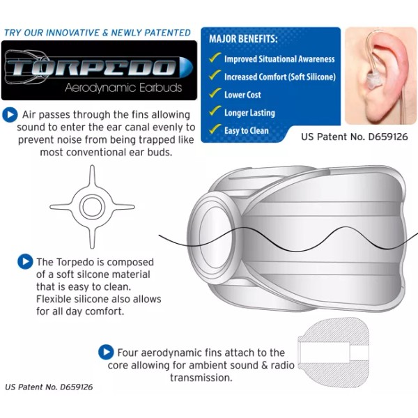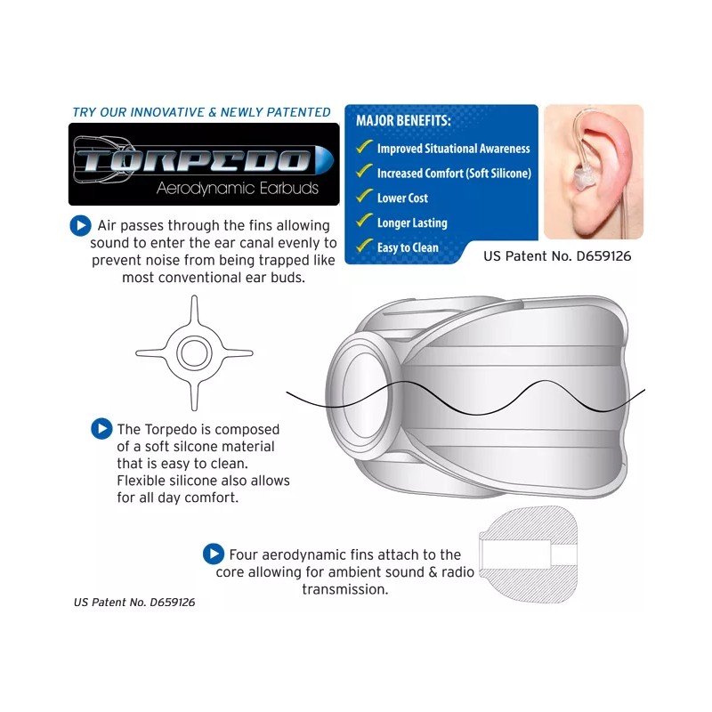 Two-Way Radio Accessory Tactical Ear Gadgets™ Situational Awareness Torpedo Earbud for Radio Earpiece