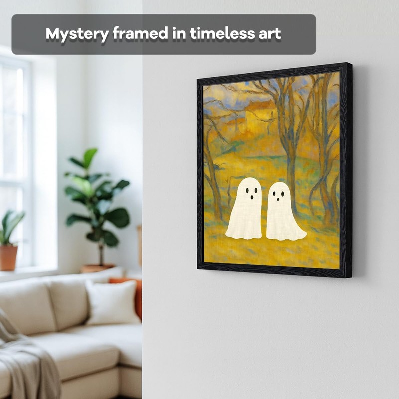 - 【ICONIC ART, SPOOKY TWIST】 – World-famous masterpieces reimagined with an ethereal ghost; haunting yet playful wall decor for living rooms, bedrooms, offices, kitchens, or hallways.