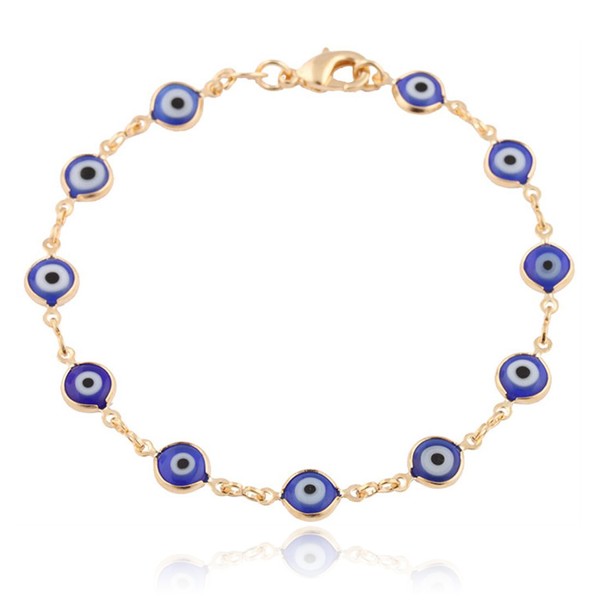 Two Year Warranty Gold Overlay with Navy Blue Mini Evil Eye Style 7.5 Inch Clasp Bracelet