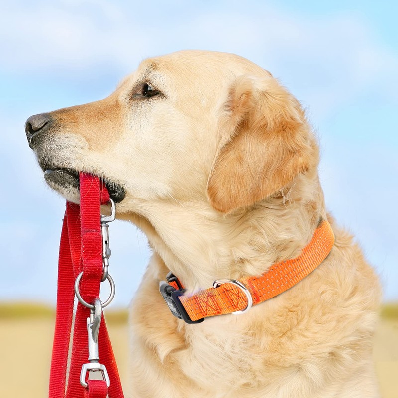 - 【Soft Nylon Collar】The high density nylon webbing is wear-resistant and all joints treated with sewing to protect your dogs and hands never scratch during use. Put on the collar, adjust the collar to the suitable size, then take your pet friend out for a walk, jog, or hike!