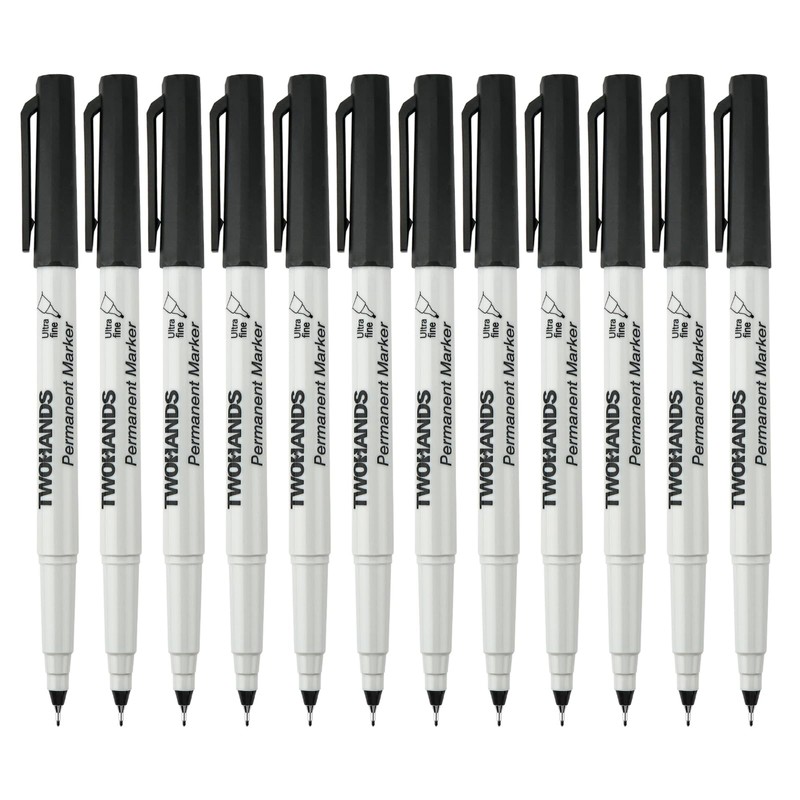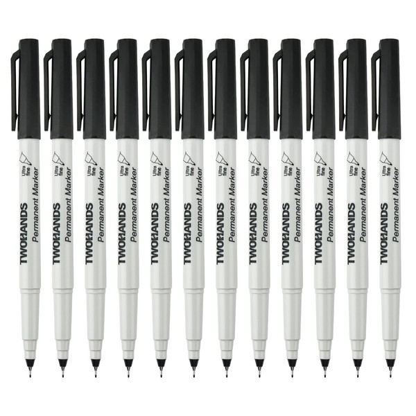 TWOHANDS Permanent Markers Ultra Fine Tip, 0.5mm, Extra Fine Point, Black, 12 Count, 21618