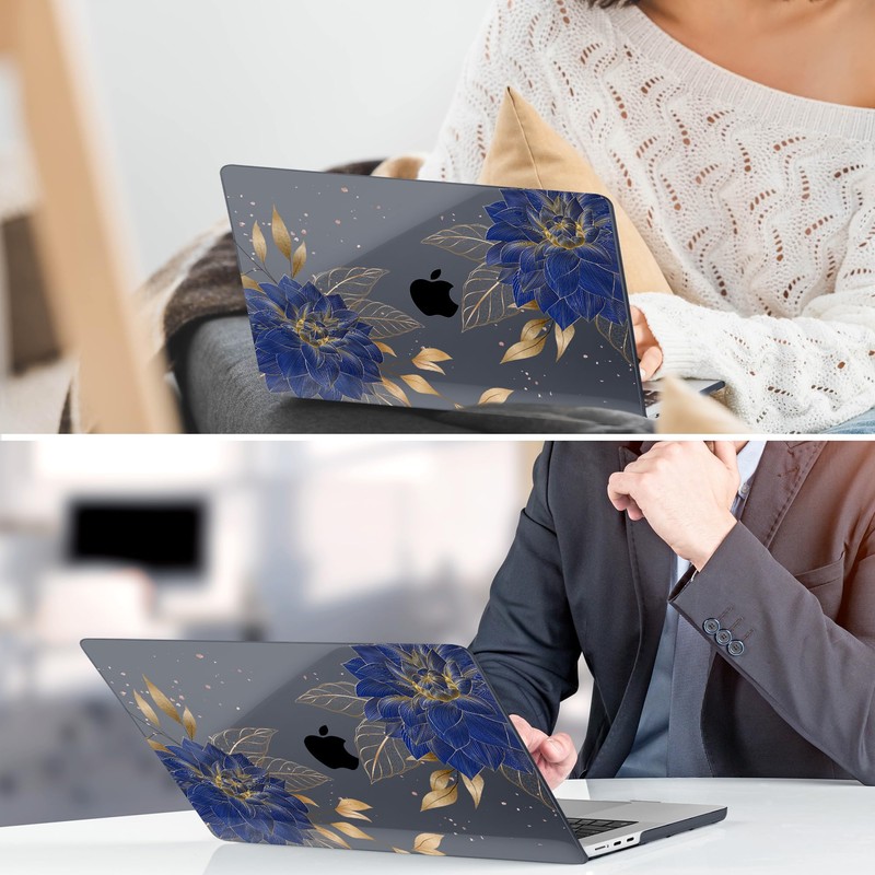 TWOLSKOO for M3 MacBook Air 13.6 Inch Case 2024-2022 A3113 A2681 M2 with Touch ID & Retina Display, Plastic Hard Shell Cover with Screen Protector & Keyboard Cover & Trackpad Film, Dahlia Flowers