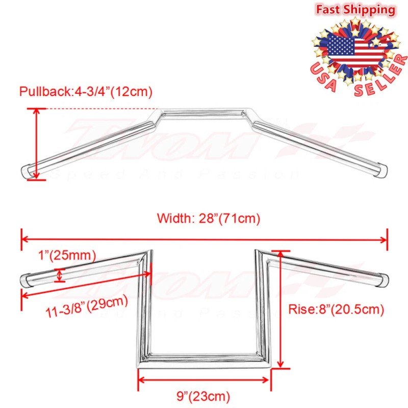 Twom 1" Motorcycle 8" Black Rise Ape Hanger Handlebars Z-Bar Drag Bars For Harley