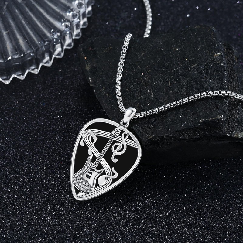 Twoowl Guitar Pick Necklace 925 Sterling Silver Black Guitar Pick Pendant Sou...