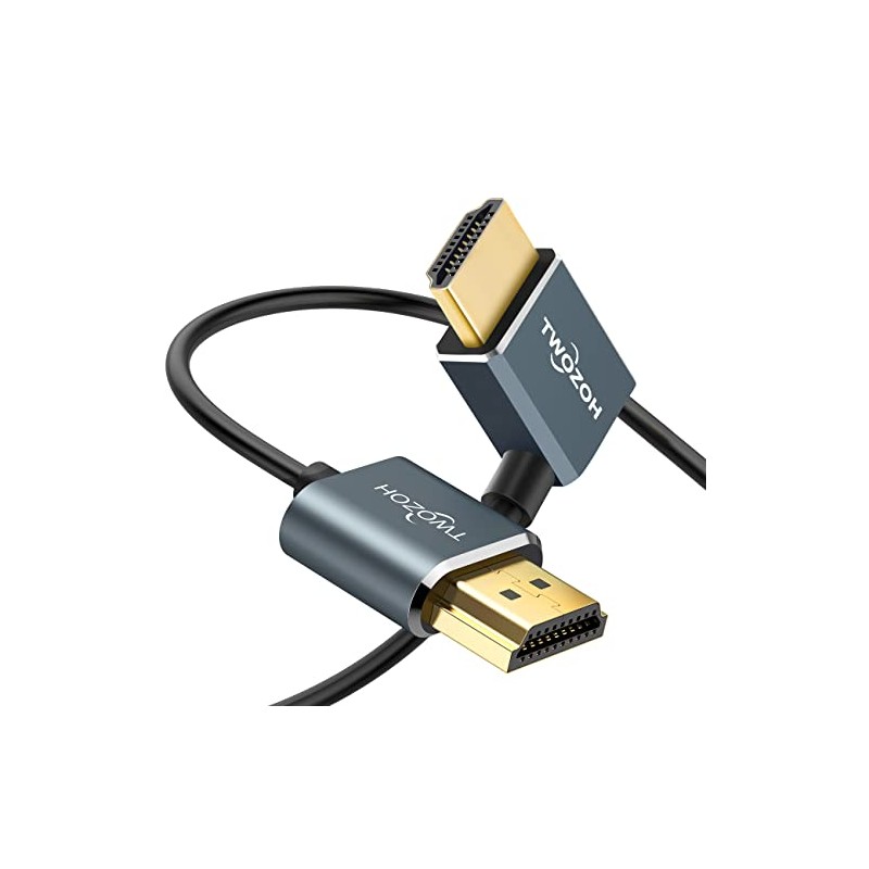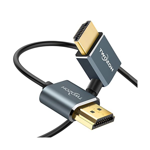 Twozoh Flexible HDMI to HDMI Cable Right Angled 90° 2M, Ultra thin and Slim HDMI Cord Support 3D/4K@60Hz