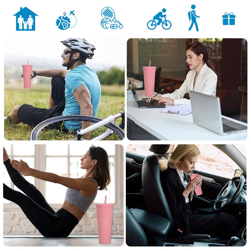 - [Reusable Studded Cup]Reusable double structured mug that also keeps chilled and cold drinks at the ideal temperature for longer. No leaks or spills, perfect for travel, gym, office, or cooling off at the beach. (Not recommended for hot drinks.).