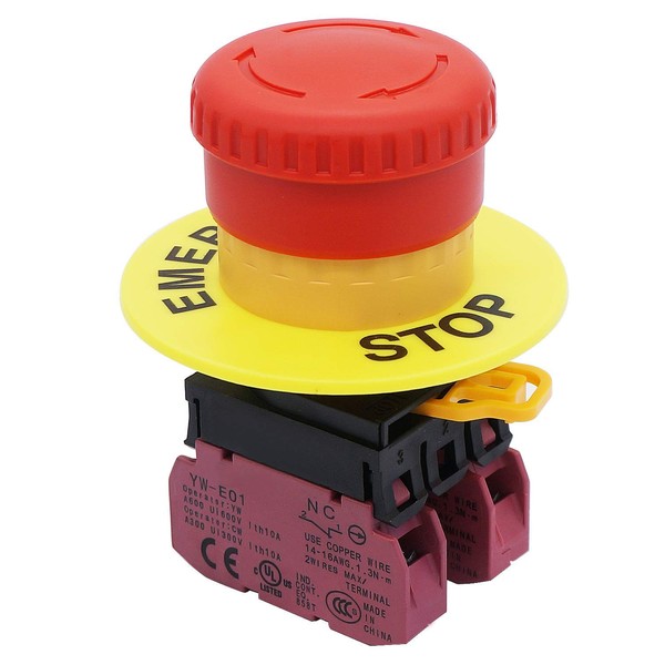TWTADE / 22mm 2 NC Red Mushroom Latching Emergency Stop Push Button Switch 10A 600V YW1B-V4E02R