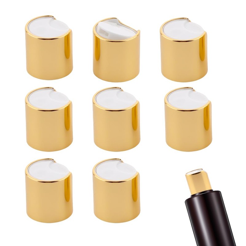 TWZKXC 8 Pcs 24/410 Aluminized Plastic Disc Top Caps, Gold Aluminized Disc Top Caps, for 24mm Diameter Inner Squeeze Refillable Bottles Replacement Cap, Shampoo Bottles, Gold White