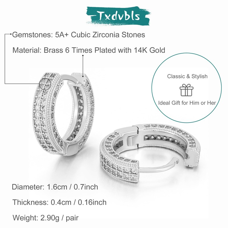 Txdvbls Silver Hoop Earrings for Women Cubic Zirconia Cartilage Mens Huggie Earrings 14K Plated Silver Hypoallergenic Trunky Hoop Earrings Men 4 Rows