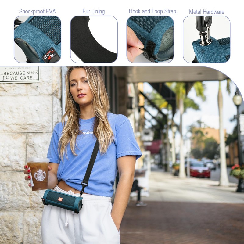 - 【EVA Protective Case】Made of durable EVA: shockproof and scratch proof, protect the speaker from drops, bumps, scratches and abrasions while carrying. Lightweight and compact, will not bulk the speaker, great for outdoor easy carrying.