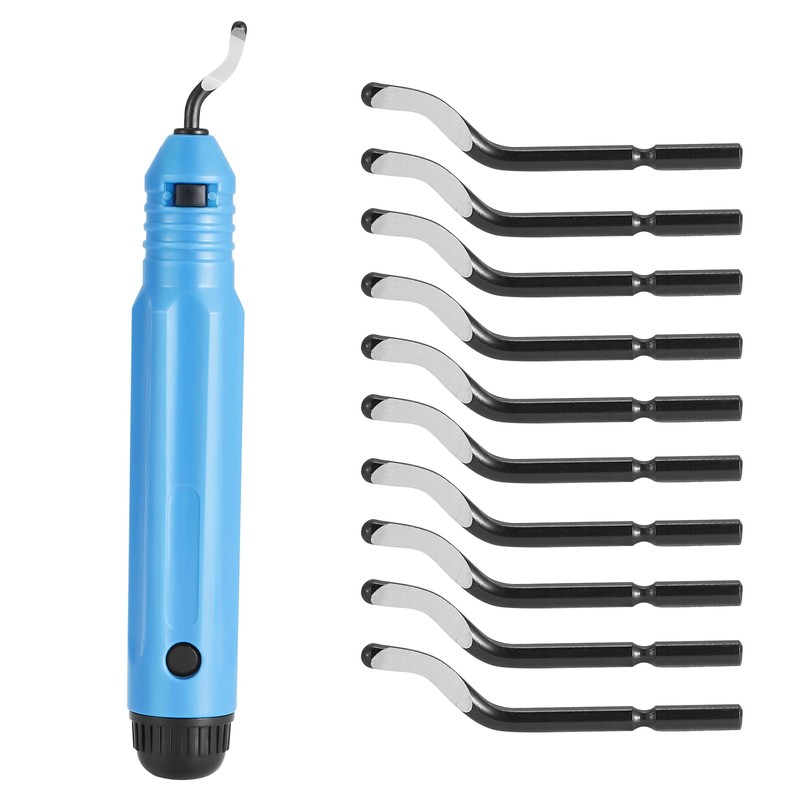 - El kit de eliminación de rebabas viene con mango de goma NB1100 de alta calidad que proporciona un agarre cómodo y seguro. También incluye 10 cuchillas de desbarbado BS1010