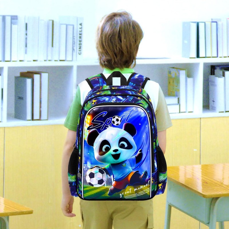 - 【3-Piece Soccer Themed Panda Backpack】: Includes Kids School Backpack (16"x12"x6" Inches) + Lunch Box + Pencil Bag, scientific partition design, cultivate your child's independent organizing ability.