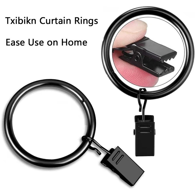 Txibikn 10 Pcs 1.37 Inch Black Curtain Rings with Clips Hooks Heavy Duty Metal Hooks for Home Decorative Shower Curtain Hangers Eyelet Curtain Rods Hangers