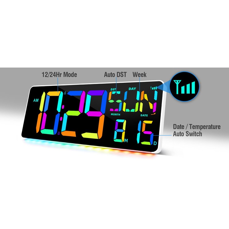- 【13.7" Large Digital Wall Clock with Auto DST】 TXL large display digital clock uses a 13.7 inch high-definition large LED screen, which shows the day, date, time and temperature that can be clearly seen across the room. It is an excellent wall-mounted digital clock for seniors and the elderly who has poor eyesight.