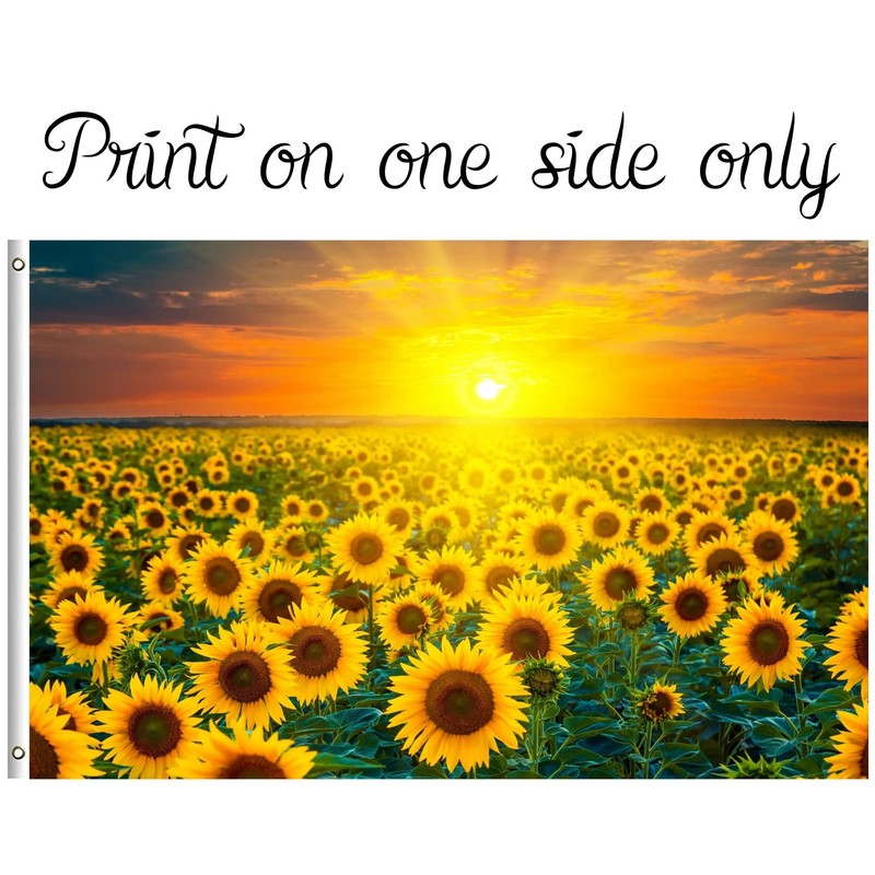 Txtains Sunflower Flower Fields Farm Sunset Spring Summer Nature Landscape Flag 3 x 5 Feet Single Sided with Brass Grommets, 3x5 Ft Banner for Garden Yard House Decor
