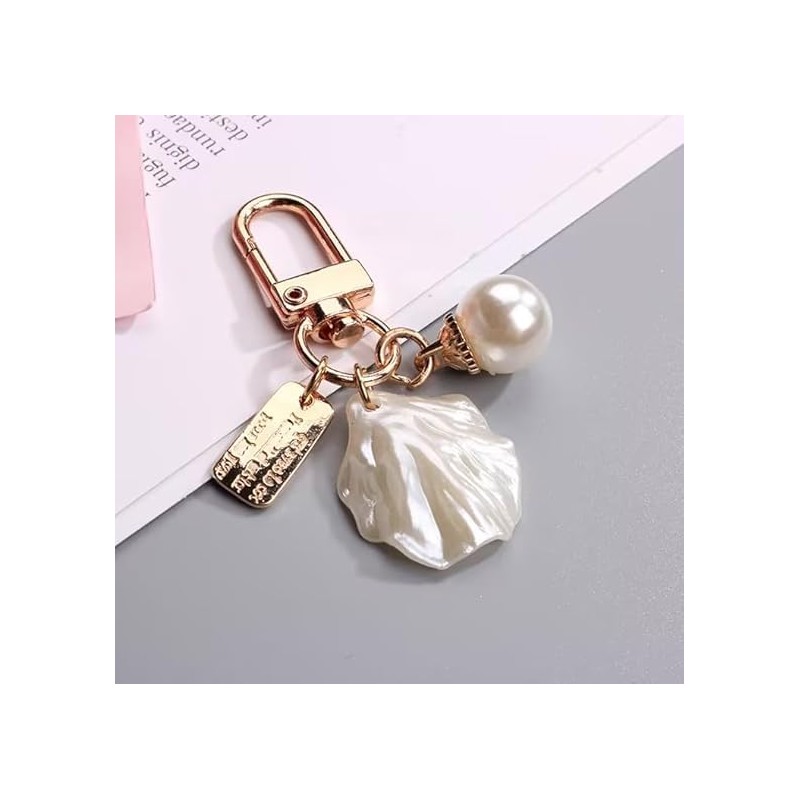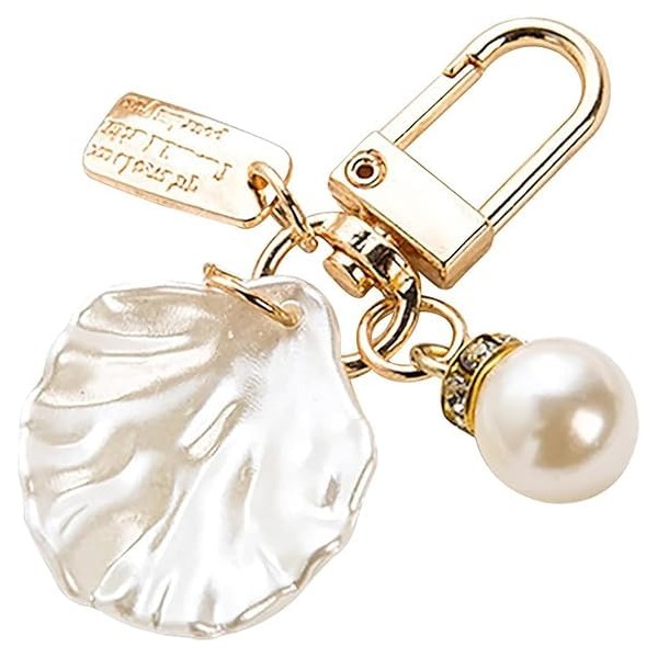 Txuolin Gold Pendant Handbag Rhinestones Keychain Keyring Shell Purse Charm Crystal Pearl Keychains Women Car Ring Charm Accessories