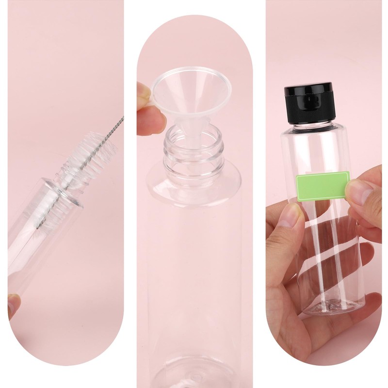 TXXATX travel bottles wird mit 2 durchsichtigen kunststofftrichtern geliefert, mit denen sie die flaschen schnell und einfach mit flüssigkeit füllen können. Etikettenaufkleber lassen sich leicht klassifizieren und markieren, sodass sie sie schnell identifizieren und verwenden können. Der transparente flaschenkörper zeigt intuitiv die farbe des inhalts, die verbleibende menge und den rückstand an und sorgt so für eine übersichtlichere lagerverwaltung.