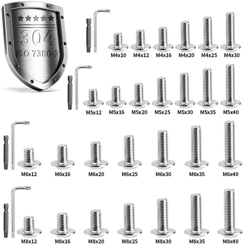 - High-quality materials: TXXATX flat head screws stainless steel M4 x 10 mm are made of 304 stainless steel, comply with the standards ISO 7380-2, have a smooth surface without burrs, are extremely durable and are characterised by corrosion resistance, wear resistance, rust protection and scratch resistance. TXXATX lens head screws silver M4 remain stable and resistant to deformation and breakage even when used in outdoor areas with high humidity or high temperatures.