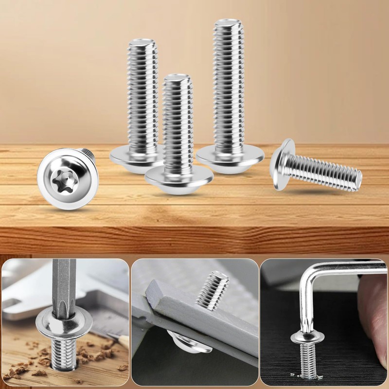 - Integrated flange: TXXATX M4 stainless steel screws have an integrated flange seal that increases the contact surface with the material, effectively distributes force and does not damage the surface of materials such as wood and metal, while improving friction and clamping force. TXXATX lens head screw silver with flange Torx can effectively reduce damage caused by vibrations or long-term use.