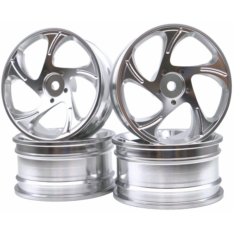 TxxRcss 1/10 RC Drift Tires and Aluminum Wheels Rims Rally Racing Tyres 12mm Hex for 1:10 Scale On Road Touring Street Car Tamiya Traxxas HPI KYOSHO XV02 XV01 TT01 TT02 PTG2 A959 4PCS (Silver)