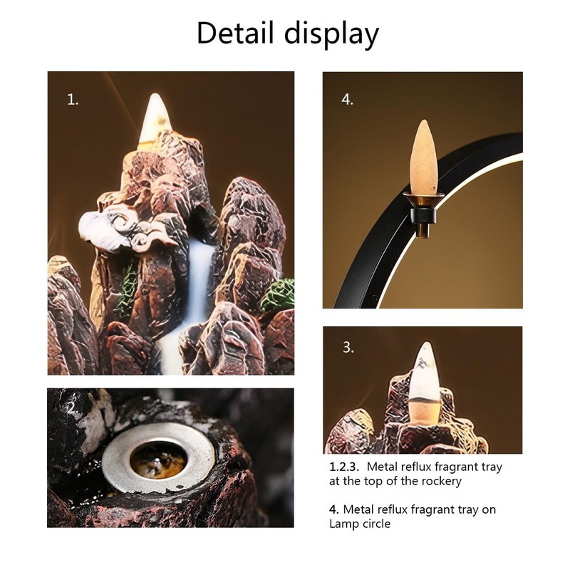 - Unique Design and Craftsmanship: Crafted from resin, this backflow incense burner features a lifelike mountain landscape design, complemented by an LED light ring, creating captivating light and shadow effects in your space.
