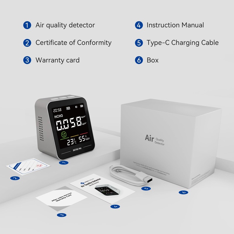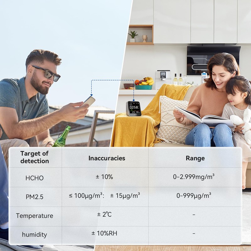 - 5 in 1 Indoor Air Quality Monitor with WiFi App and Web Dashboard, PM2.5, HCHO,Temperature and Humidity Meter