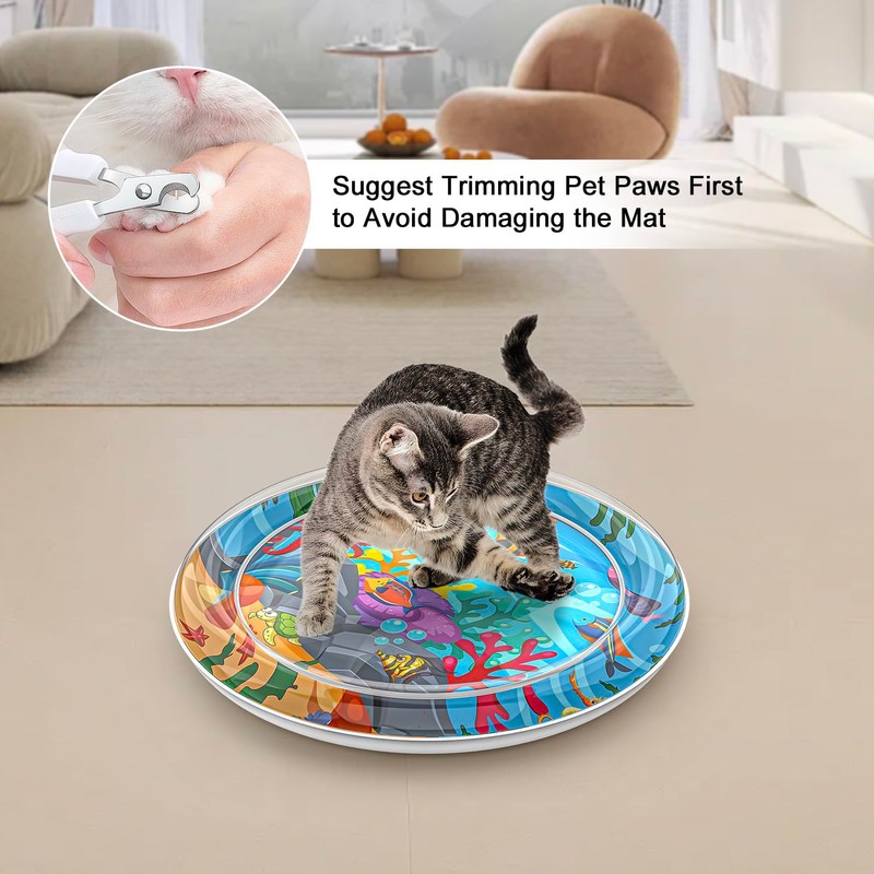 - MULTIFUNCTIONAL WATER PLAY MAT The cat water sensor play mat is the perfect sensory play mat with removable play pieces inside. Pets love to touch floating fish, resulting in a natural hunting instinct. It is perfect for keeping your cat entertained and active.