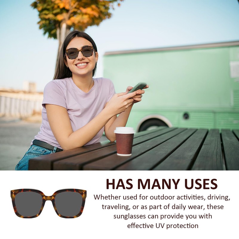 - Fashionable design: these sunglasses have a stylish design with black frame with leopard print and grey lenses. It not only has a good sun protection effect, but also strengthens your sense of fashion. It is very suitable for various outdoor activities.
