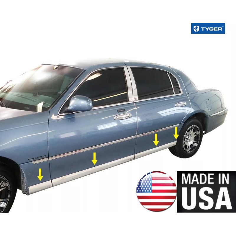 TYGER For 1998-2011 Lincoln Town Car Lower Rocker Panel Stainless Trim 4" 8PC