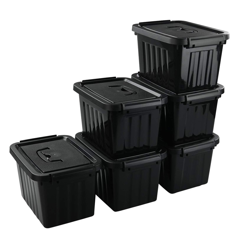 Tyminin Black Plastic Storage Bin ith Lids and Latch, Small Stackable Organizing Box Containers, 6 Packs