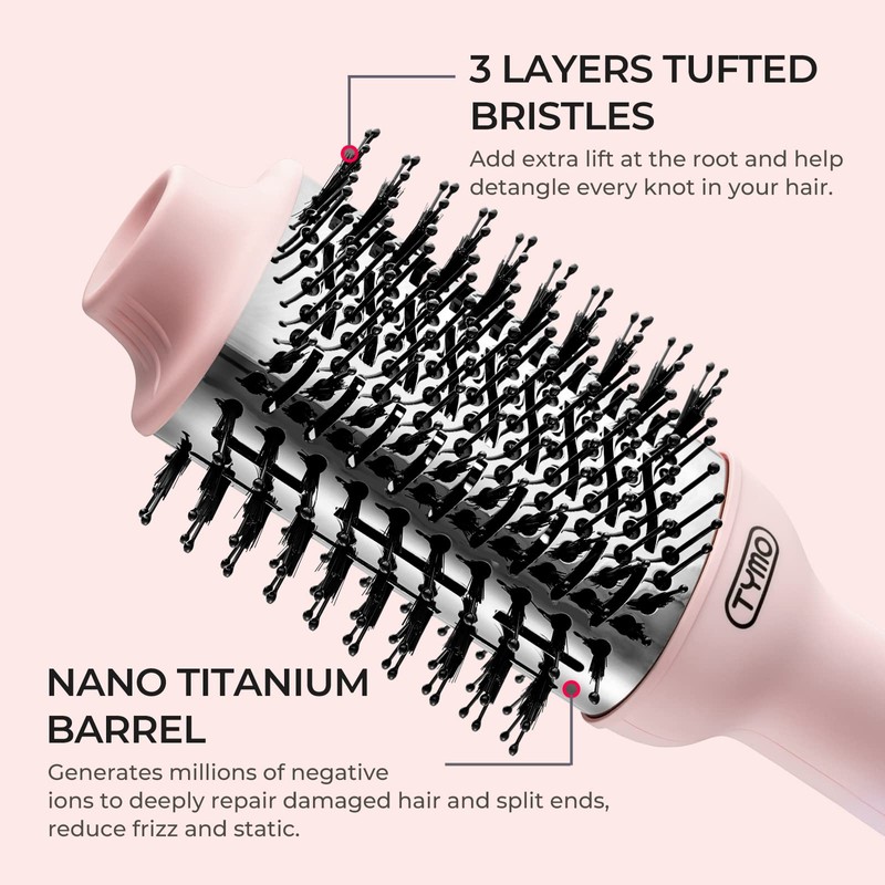 TYMO Pink Volumizer Hair Dryer Brush with Titanium Barrel, 1200W, 3 Speeds, Nylon Bristles, Ionic Technology, Salon Long-lasting Hairstyles, Hot Air Brush for Women, Designed for 120V USA Outlets