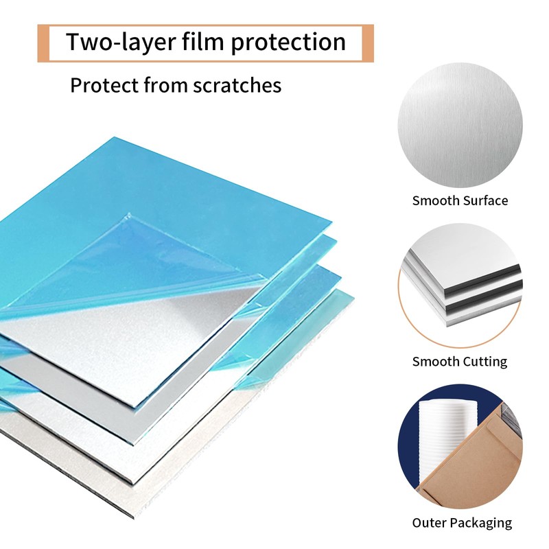 - 【Package】: Both sides of aluminum sheet are covered with a film and packaged well in a paper box. It keeps aluminum plate prevent from having scrarches and being bent.