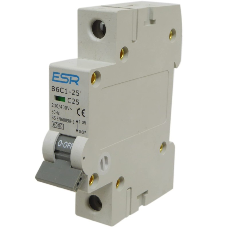 Type C MCB Circuit Breaker, Single Pole, Din Rail Mount, 6kA | 6A-63A Options (25 Amp)