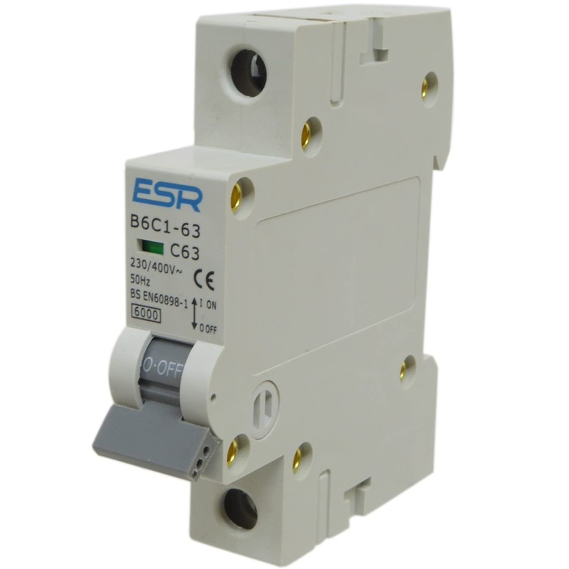 Type C MCB Circuit Breaker, Single Pole, Din Rail Mount, 6kA | 6A-63A Options (63 Amp)