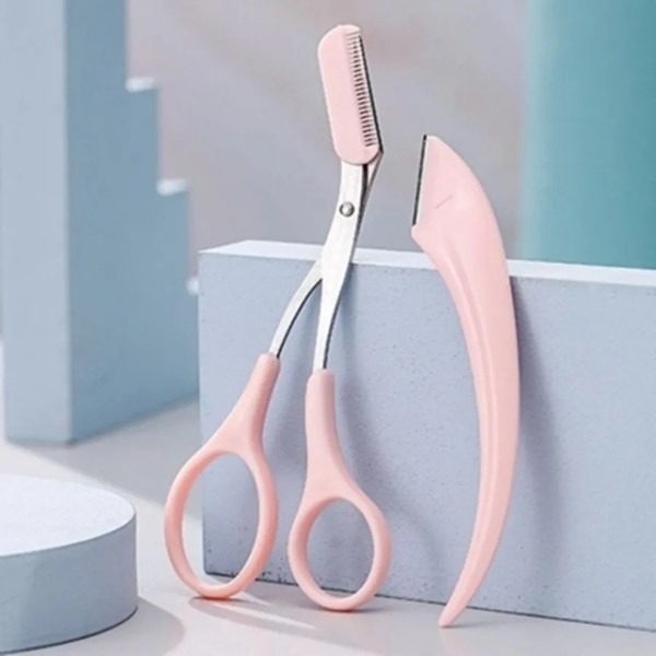 (Type Pink Set) Portable Men Women Eyebrow Grooming Kit Eyebrow Scissors Knife Set