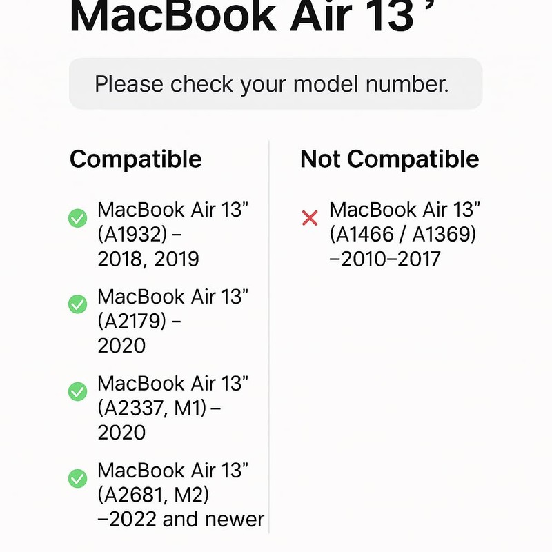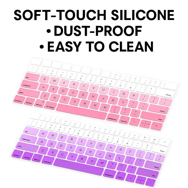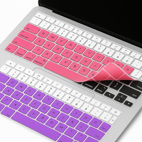 - 1. 2-Pack Bundle – Includes two gradient silicone covers in pink and purple for MacBook Air 13” (A1932/A2179/A2337) 2. Perfect Fit – Tailored for U.S. MacBook Air keyboard layout (2018–2022), easy to install and remove 3. Protective & Durable – Shields against dust, spills, and everyday wear without reducing typing sensitivity 4. Washable & Reusable – Rinse clean with water, dries quickly, and re-applies without residue 5. Ultra-Thin Comfort – Soft silicone design is lightweight, flexible, and safe for screen contact when closed Color Disclaimer – Colors may vary slightly due to lighting, screen settings, or production batches.